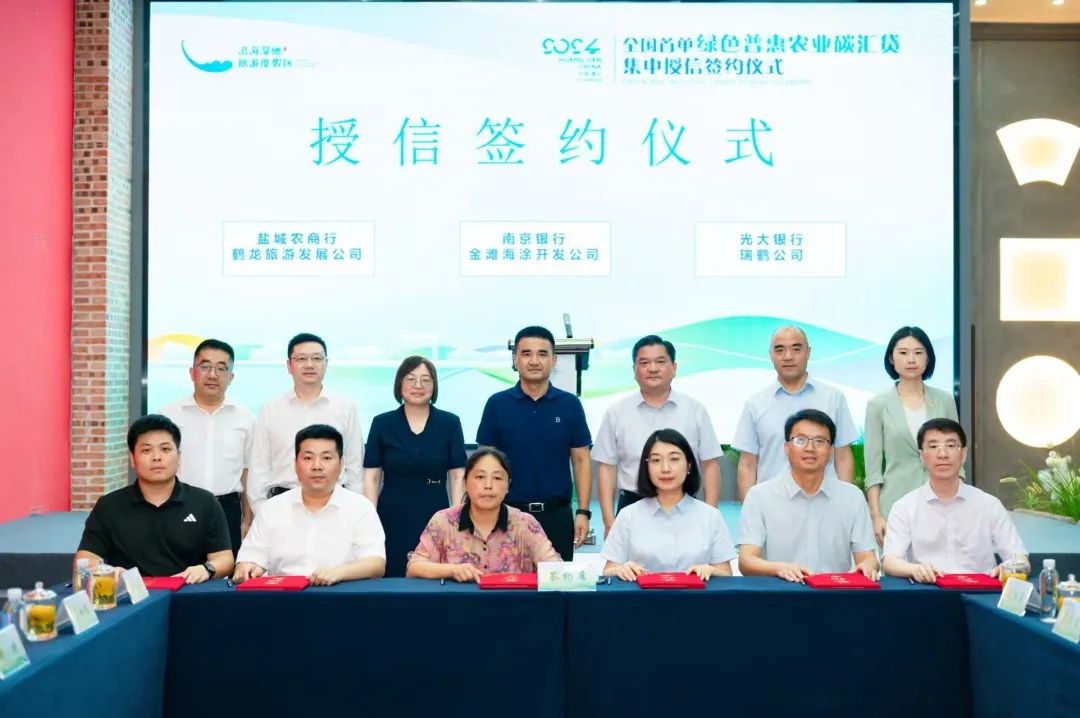 8月13日,全国首批绿色普惠农业碳汇贷在盐城市亭湖区黄尖镇集中授信签约,盐城农商行、南京银行盐城分行、光大银行盐城分行将联合向黄尖镇发放农业碳汇贷款1160万元。