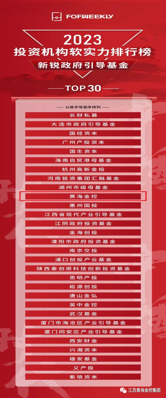 7月8日,《母基金周刊》正式揭晓2023投资机构软实力排行榜,凤凰体育 荣登“2023投资机构软实力排行榜-新锐政府引导基金TOP30”榜单。