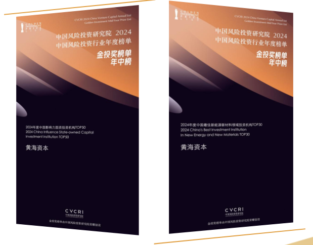 9月26日,中国风险投资研究院“2024中国风险投资行业年度榜单·金投奖榜单·年中榜”隆重揭晓,分别评选了综合榜、产业榜两大板块涵盖12个子榜单,对在过去一年中国风险投资行业取得优异成绩和卓越贡献、创造社会效益的投资机构进行表彰。集团旗下“黄海资本”品牌凭借在募、投、管、退等方面的综合影响力和新能源新材料领域优异的投资表现和产业贡献,荣登“2024年度中国影响力国资投资机构TOP50”及“2024年度中国最佳新能源新材料领域投资机构TOP30”等榜单。